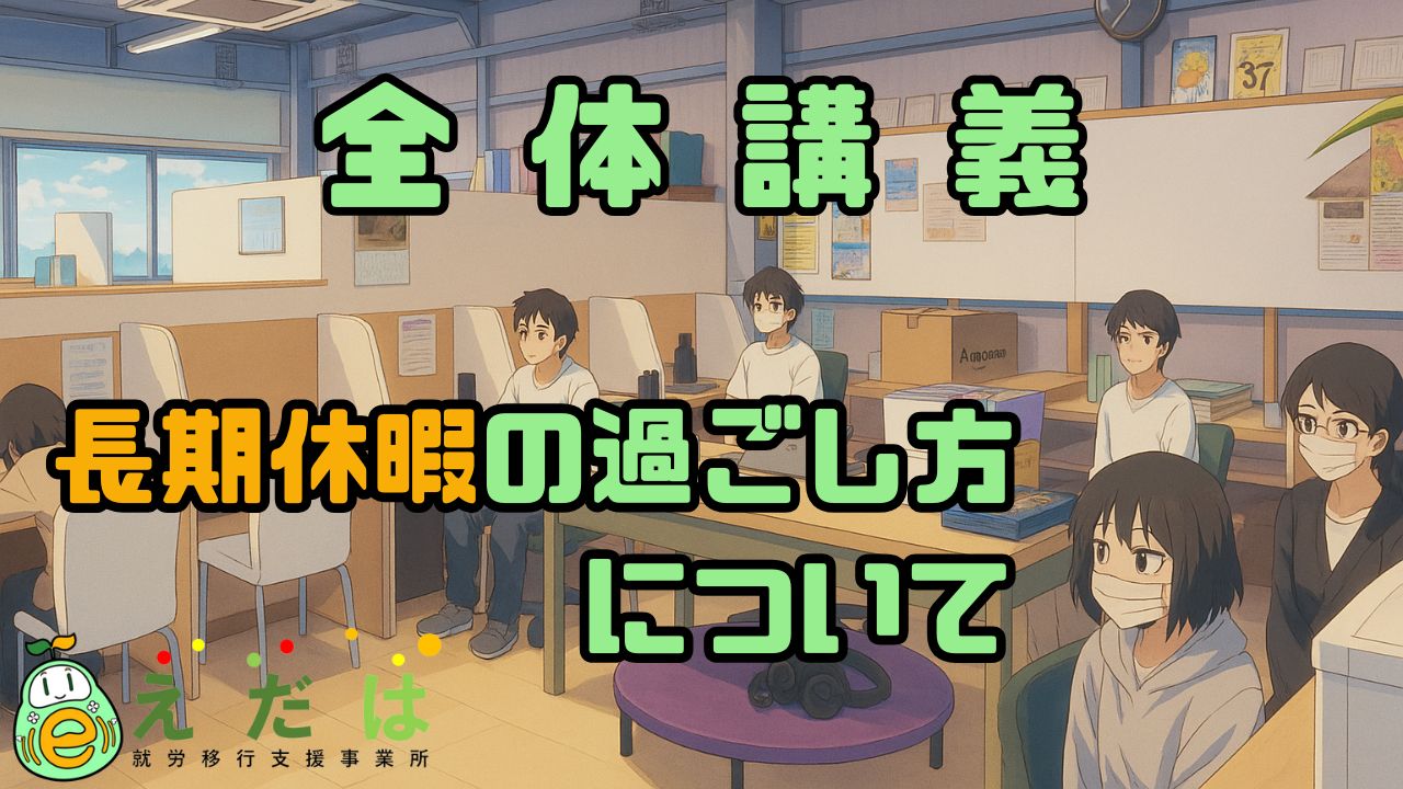 今月は、「社会人としての長期休暇の過ごし方」について全体講義を受けます。